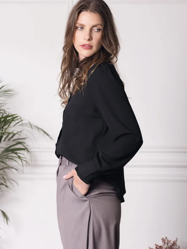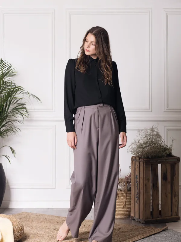 Pantalon fluide à taille haute. Jambes droites et larges.