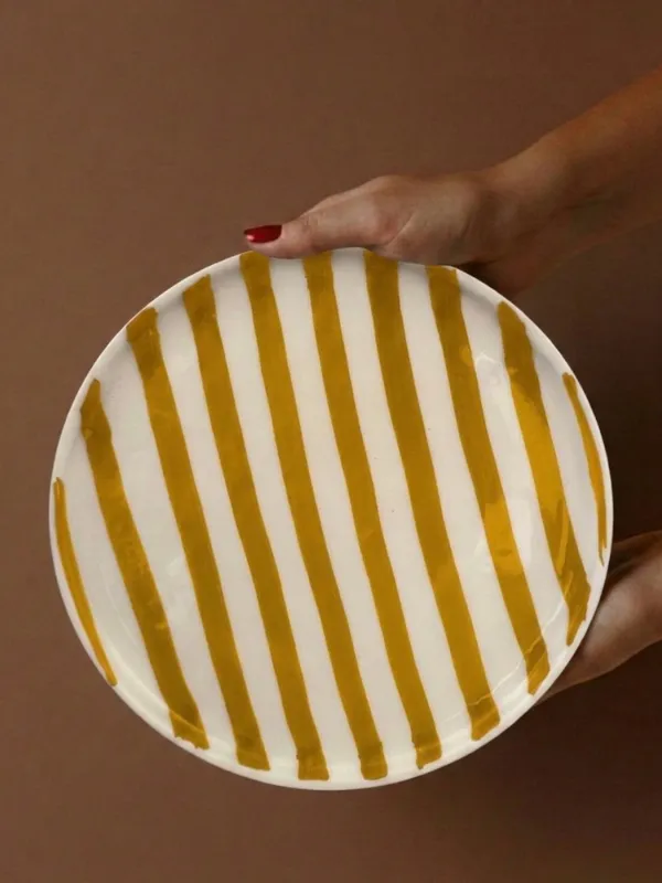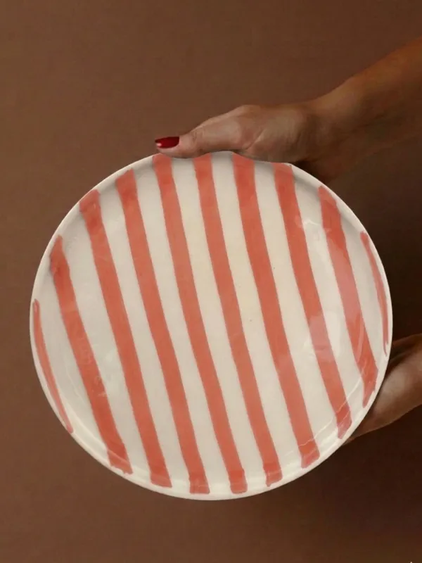 Assiettes à larges rayures au design simple et moderne, idéales pour apporter une touche originale à votre table.
