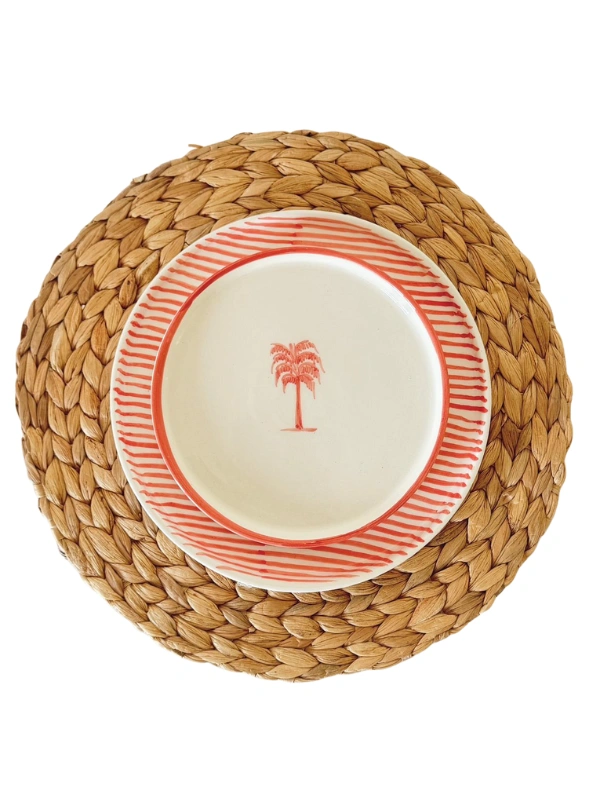 Avec son motif de palmiers finement dessiné, cette assiette invite à l’évasion et à la douceur des paysages tropicaux. Peinte à la main, elle mêle fraîcheur et élégance, pour apporter une touche de nature stylisée à votre art de la table.