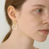 Boucles d’oreilles légères et élégantes, mariant perles blanches semi-précieuses et maillon doré pour un contraste raffiné.