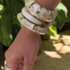 Idéal pour celles qui aiment les accessoires originaux mais sophistiqués, ce bracelet s’associe aussi bien à des tenues décontractées qu’à des styles plus habillés.