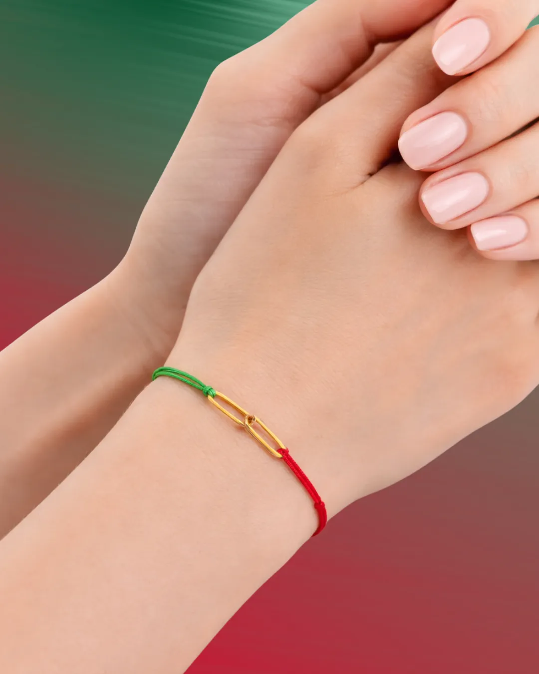 Célébrez la qualification du Maroc à la CAN 🇲🇦 avec ce bracelet unisexe aux couleurs du drapeau. Fait main, il combine cordon rouge et vert avec un maillon doré symbole de force et d’unité. Ajustable, léger et confortable, il vous accompagne partout, pour porter fièrement les couleurs du Maroc avec élégance et passion.