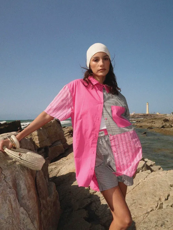 Inspirée d’une coupe d’homme, elle revisite l’oversize avec audace grâce à un patchwork de rayures upcyclées. Un essentiel moderne, confortable, et unique.