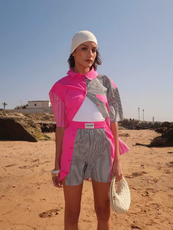 Chemise patchwork Naya – Explorez l’élégance marocaine : pièces colorées, vestes, robes, gilets, jeans et sacs faits main, fusionnant tradition, luxe et modernité. Bobo Paris