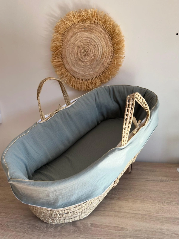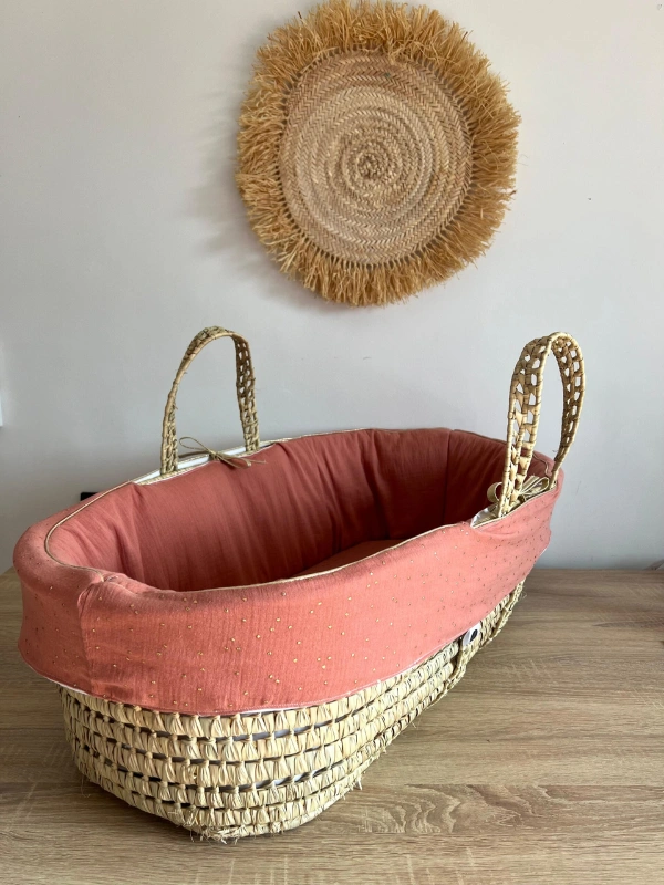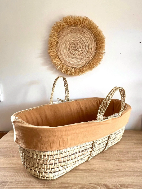 Offrez à votre nouveau-né un cocon douillet et sécurisant avec notre couffin de Moïse en palme tressée, alliant tradition et modernité pour un sommeil paisible dès la naissance.