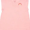 🌞 Le t-shirt Maria : Avec sa douce couleur oranger, il capture la chaleur d’un coucher de soleil estival. Coupe fluide, volants bohèmes, fronces délicates… tout en lui évoque la douceur de l’été. Et pour une touche de peps, une broderie cœur aux accents fluo illumine ce petit haut.