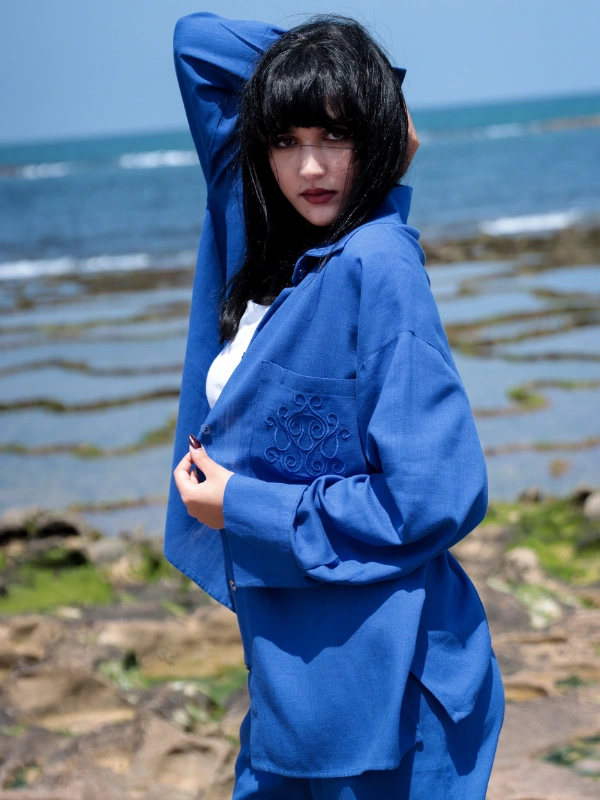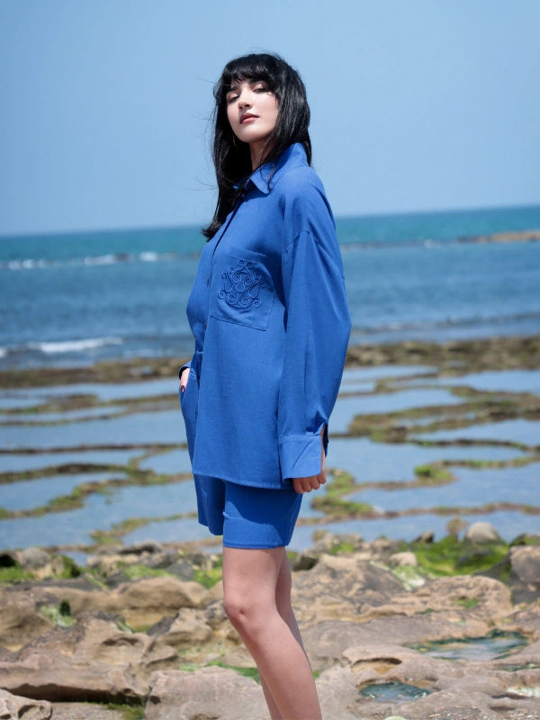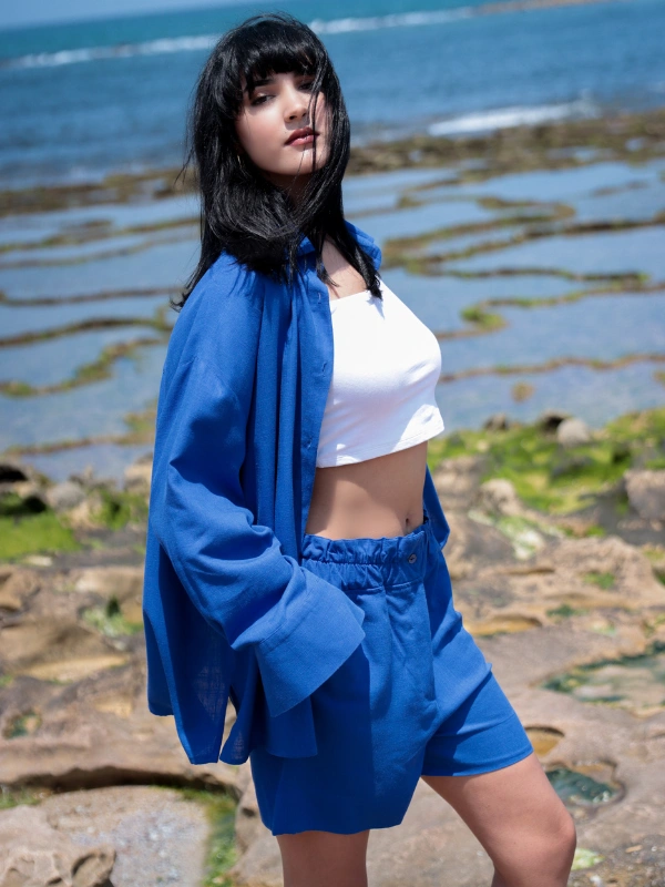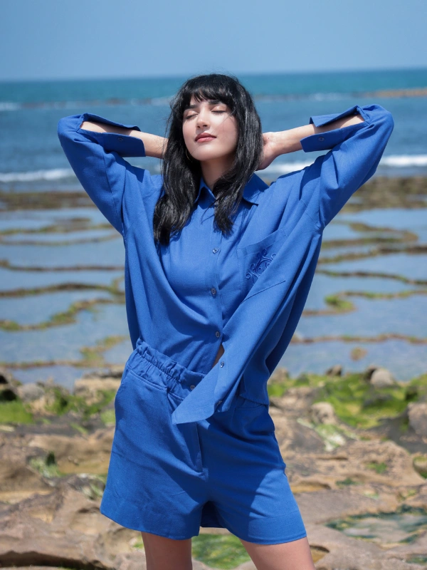 La chemise oversize apporte une touche de légèreté, tandis que le short assure une coupe agréable et moderne.
