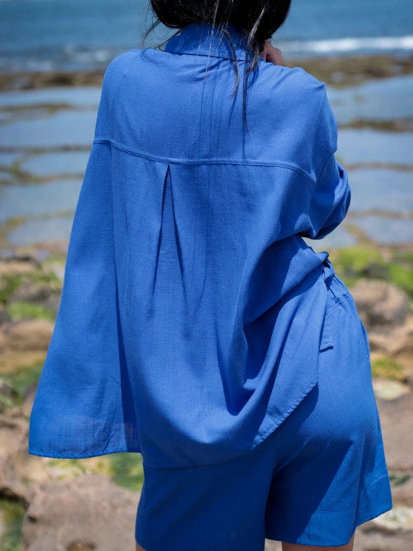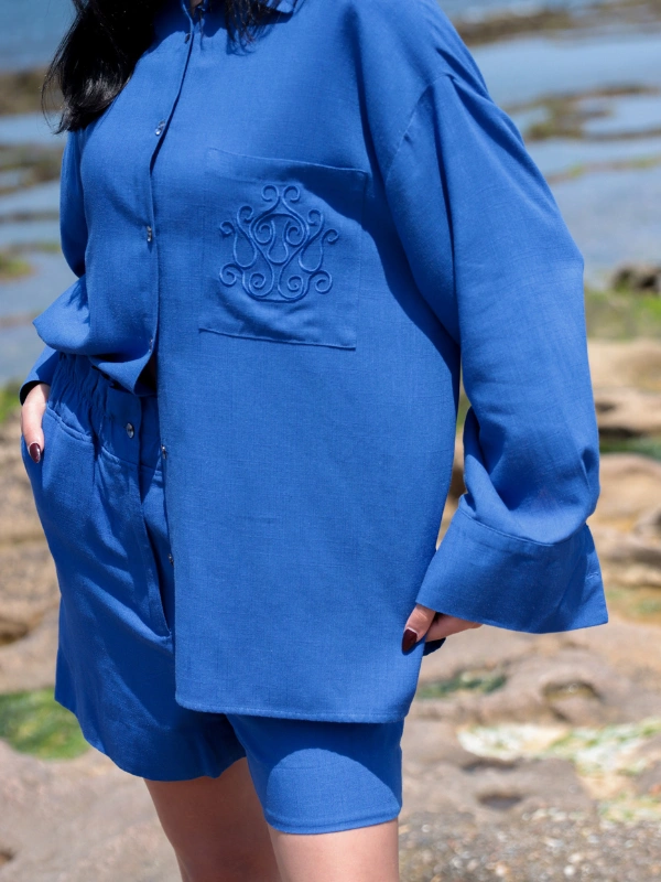 Ensemble estival en lin, composé d’une chemise fluide et d’un short confortable