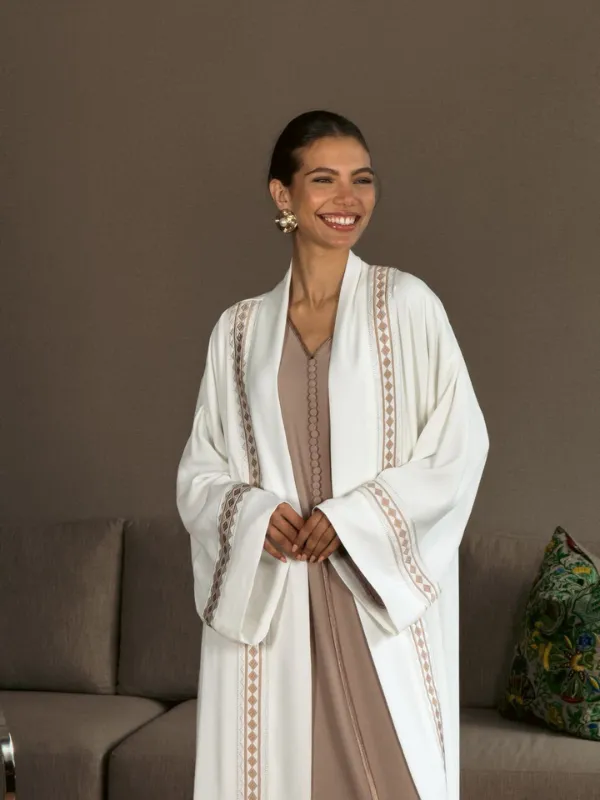 Cet ensemble kimono brodé et caftan est pensé pour sublimer la silhouette avec élégance et légèreté.