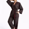 Il se compose d’un top ample à manches larges, délicatement souligné par des finitions contrastées profondes. La ceinture tressée à nouer marque la taille avec subtilité, apportant caractère et féminité à la coupe fluide. Le pantalon large, à tombé souple et maîtrisé, prolonge cette allure raffinée avec une prestance discrète.