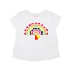 Le t-shirt Olé Olé : Plus qu’un basique, c’est une célébration de la vie ! Inspiré de l’éventail Flamenco et du zellige maroco-andalou, il illumine chaque tenue avec son imprimé fluo et ses pompons sophistiqués. Facile à assortir, il accompagnera votre fille tout l’été et prolongera les vacances sous un gilet à la rentrée.