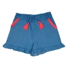 🌍 Le short Adam : Pensé pour l’aventure, il offre une coupe loose ultra-confortable, une matière fluide et une couleur denim parfaite pour les petites exploratrices. Les pompons fluo et les volants apportent une touche de fantaisie, tandis que la taille ajustable garantit un confort longue durée.