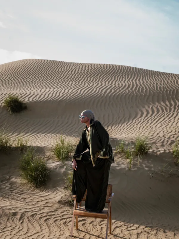 • Coupe : haut légèrement évasé avec pantalon large et entrejambe descendue.