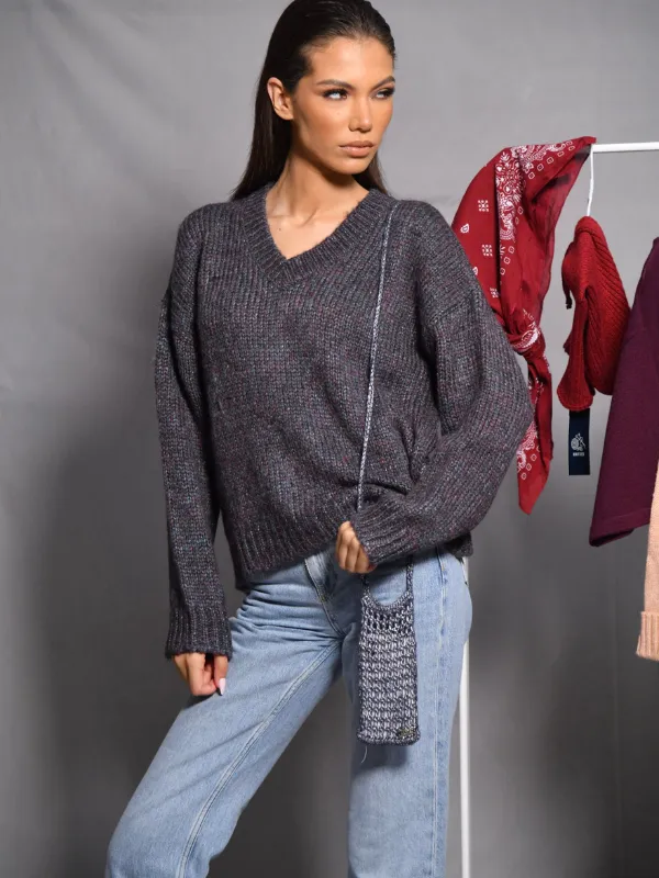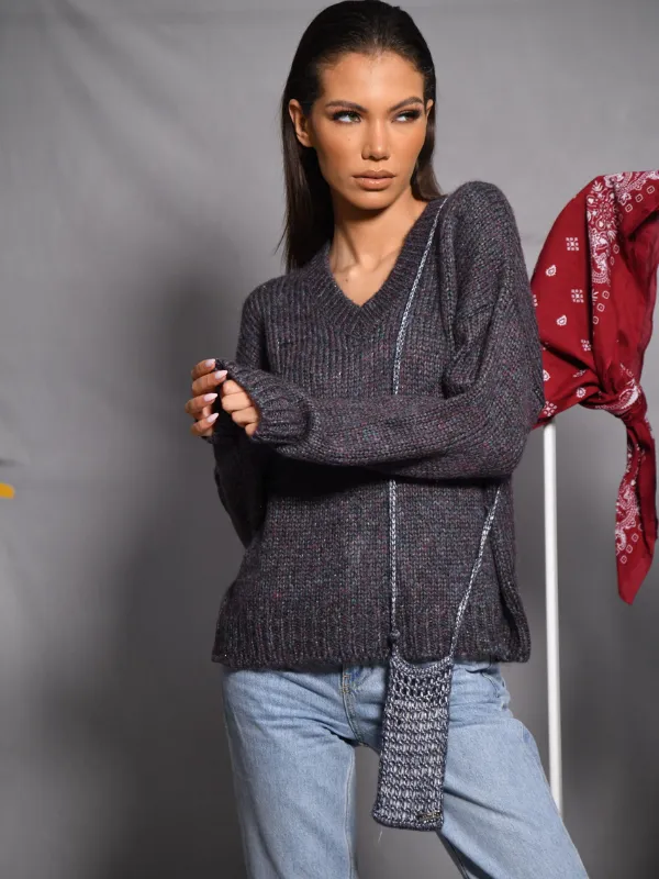 Le pull IRIS séduit par sa maille épaisse et texturée et son élégant col V.