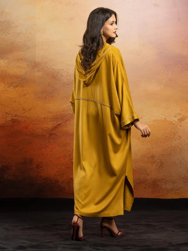 La Jellaba Shemsi couleur safran est une tenue traditionnelle élégante, confectionnée en tissu mlifa pour un tombé fluide et un confort optimal. Sa taille standard convient à différentes morphologies.
