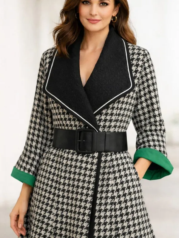 Matière : Tweed pied-de-poule avec fils d’argent, doublure en soie.