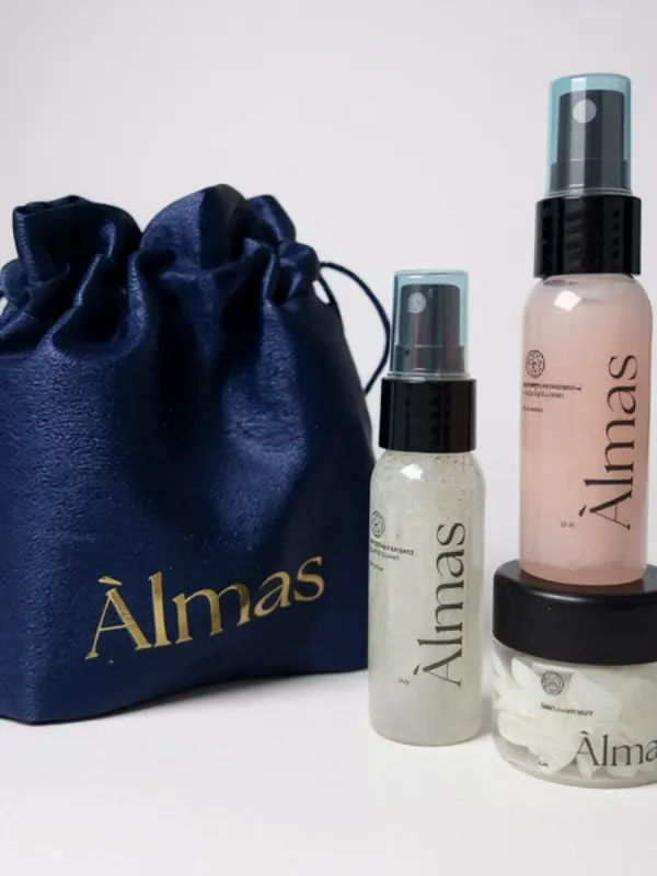 Emportez l'expérience Almas partout avec vous. Que ce soit pour un week-end, une retouche beauté au bureau ou pour découvrir nos textures, ce trio en format voyage est votre nouvel indispensable.
