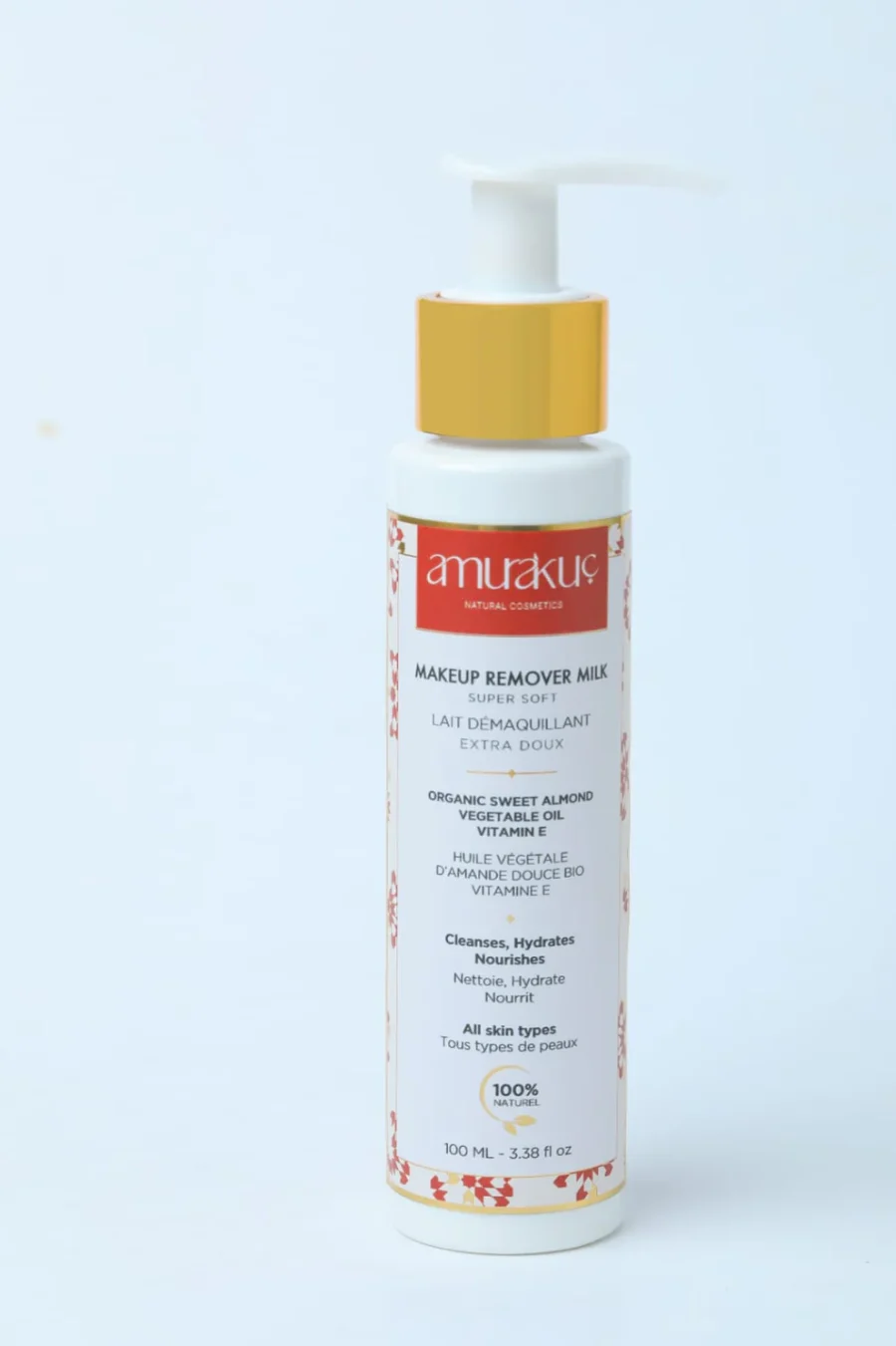 Le lait démaquillant d’Amurakuc est formulé avec des ingrédients certifiés bio. Enrichi en huile d’amande douce et en vitamine E, il possède une texture onctueuse idéale pour le démaquillage des yeux et du visage, tout en nettoyant la peau en profondeur. Il aide à garder votre peau hydratée, apaisée et nourrie.