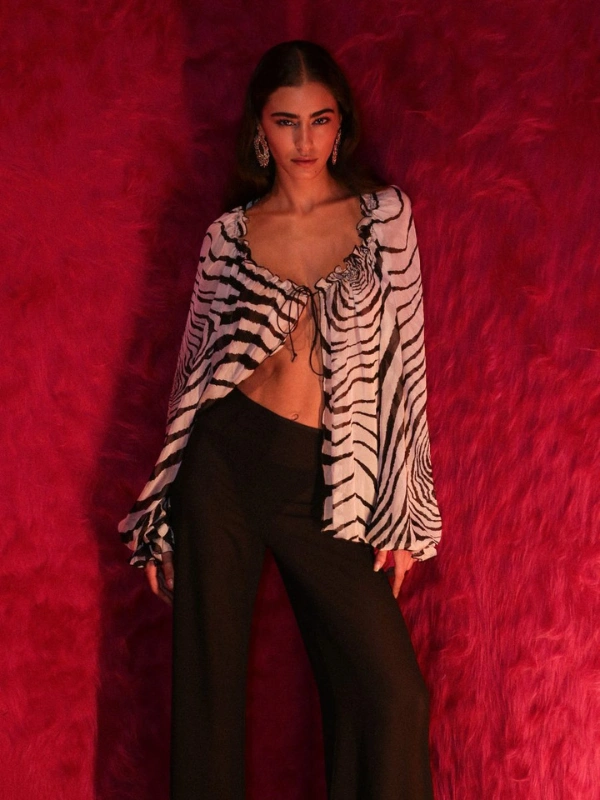 Le mannequin mesure 176 cm et porte une taille S.