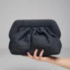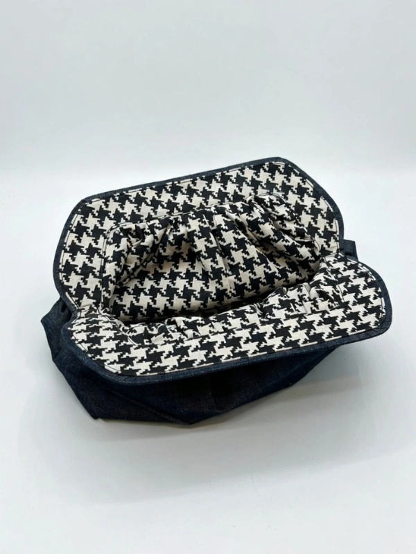 La Pochette Denim revisite le jean dans une version chic et sophistiquée. Son tissu denim sombre apporte texture et caractère, tout en conservant une élégance discrète.