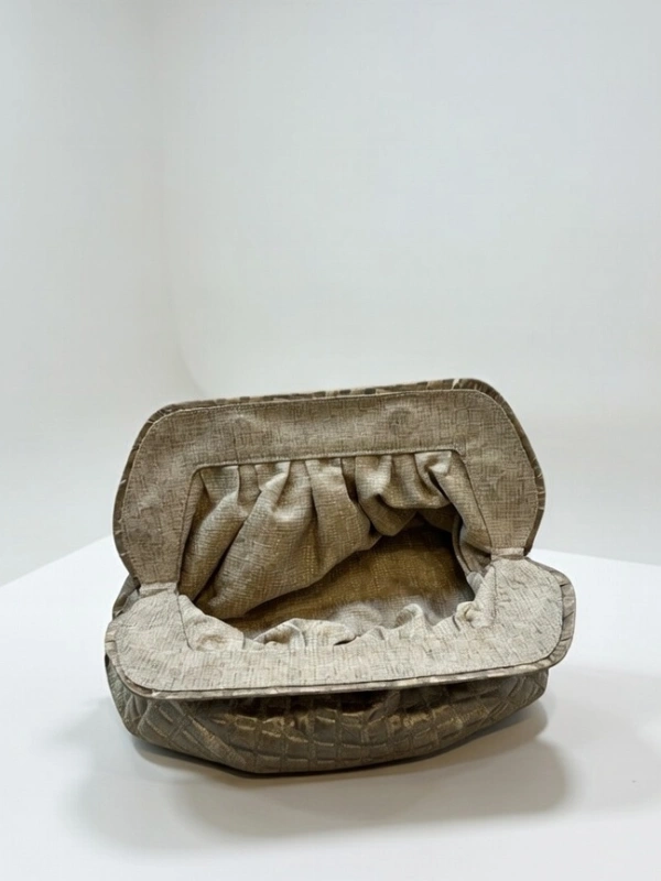 Une pochette lumineuse aux reflets dorés et au motif géométrique raffiné, idéale pour sublimer vos tenues avec élégance et modernité.