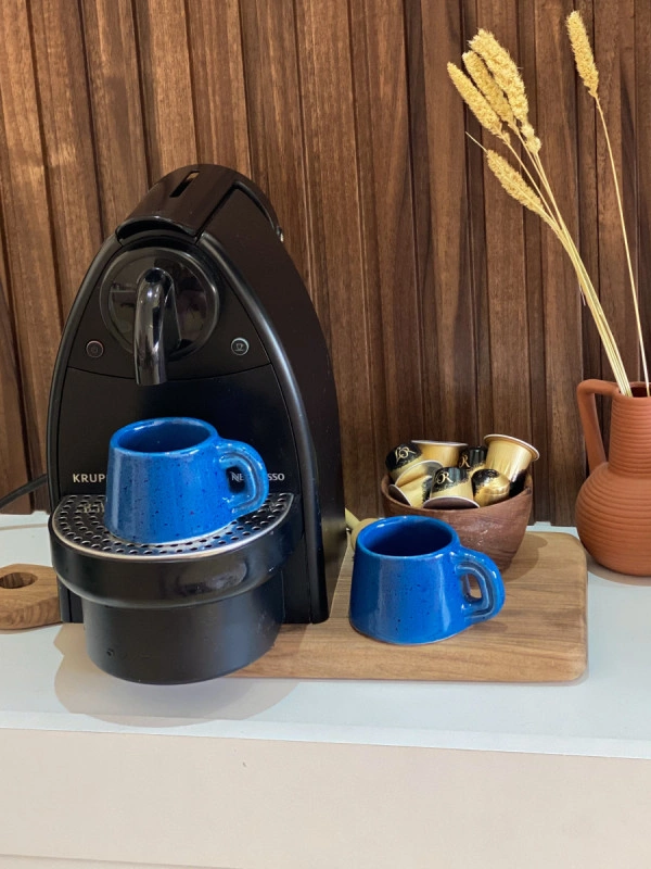 Découvrez notre adorable ensemble de 2 mini tasses à espresso en céramique, fabriquée à la main avec amour au Maroc.
