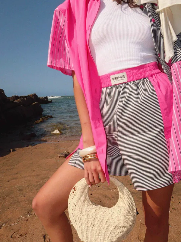Short patchwork rose Naya – Explorez l’élégance marocaine : pièces colorées, vestes, robes, gilets, jeans et sacs faits main, fusionnant tradition, luxe et modernité. Bobo Paris