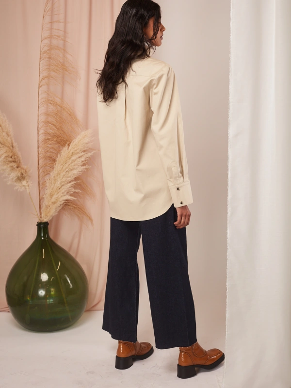 Peut se porter fermée comme une chemise ou ouverte comme une veste