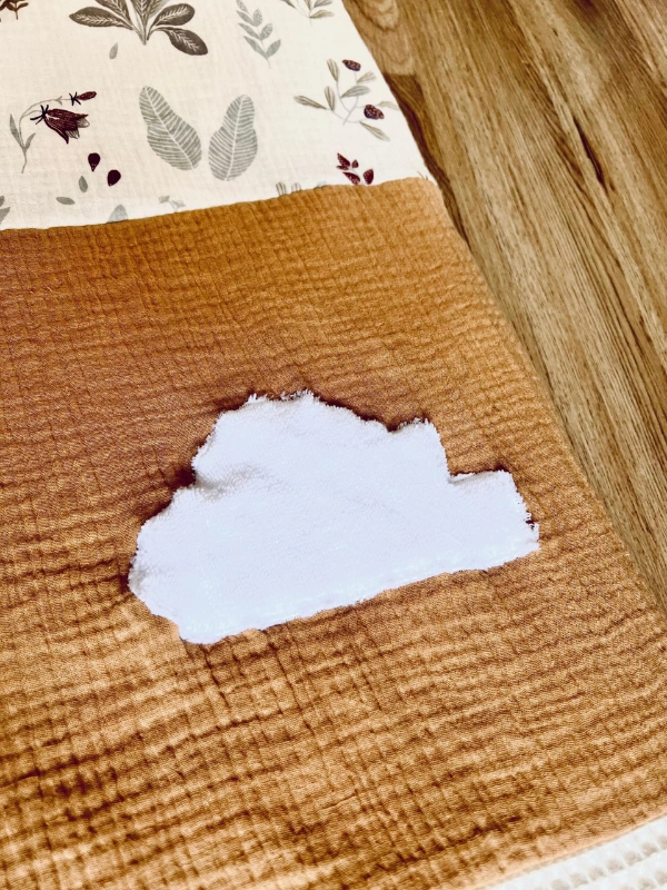 Entretien: Lavage en machine à 30 degrès (après retrait de l’anneau en bois), séchage à plat.