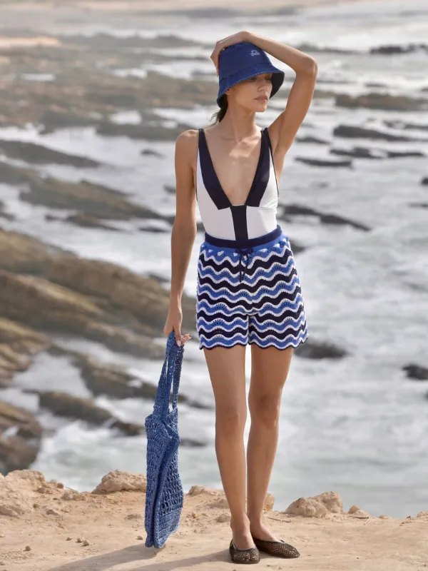 Short en crochet à motif ondulé, inspiré des vagues de l’océan.