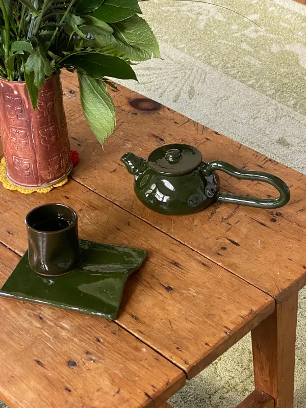 Notre théière est une ode à l’artisanat, façonnée à la main avec une anse unique où se gravent les empreintes de son histoire.