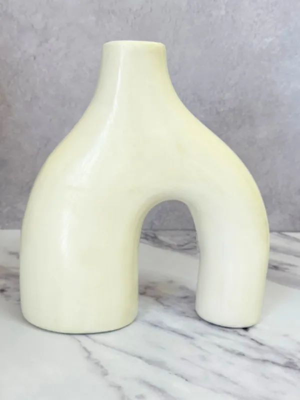Avec ses dimensions, ce vase compact mais remarquable s’intègre facilement sur une console, une étagère ou une table basse. Son ouverture centrale et ses lignes fluides en font un objet d’art à part entière, parfait pour sublimer un coin déco ou servir de vase pour fleurs séchées, tiges graphiques ou herbes naturelles.