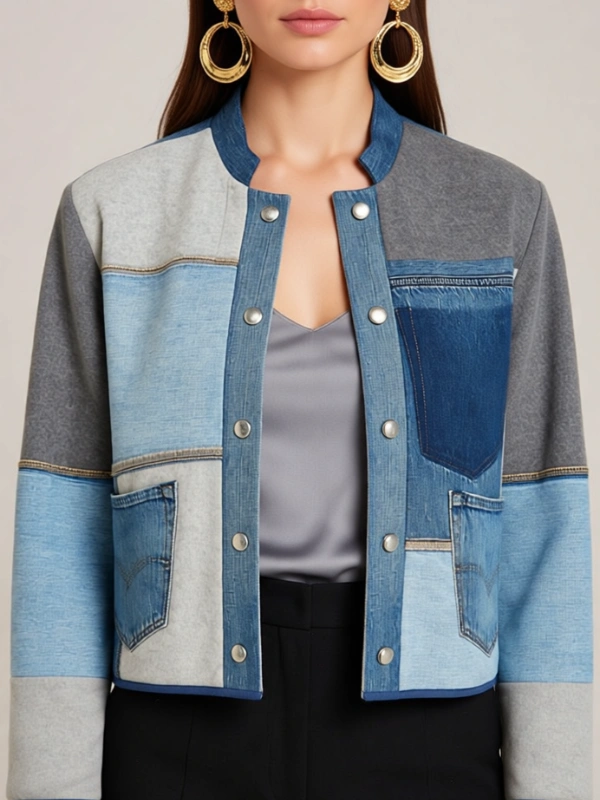 Veste Patchwork Jean et Cachemire : une fusion audacieuse de denim et de cachemire, créée en patchwork pour une pièce unique, à la fois élégante et résolument contemporaine