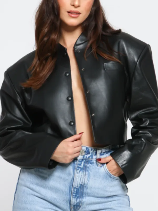 Niki affirme une silhouette graphique et féminine, à la fois urbaine et sophistiquée. Cette veste courte en cuir lisse noir, incarne une élégance discrète inspirée des années 90, avec des épaules marquées, une taille cintrée et une élégance radicale.